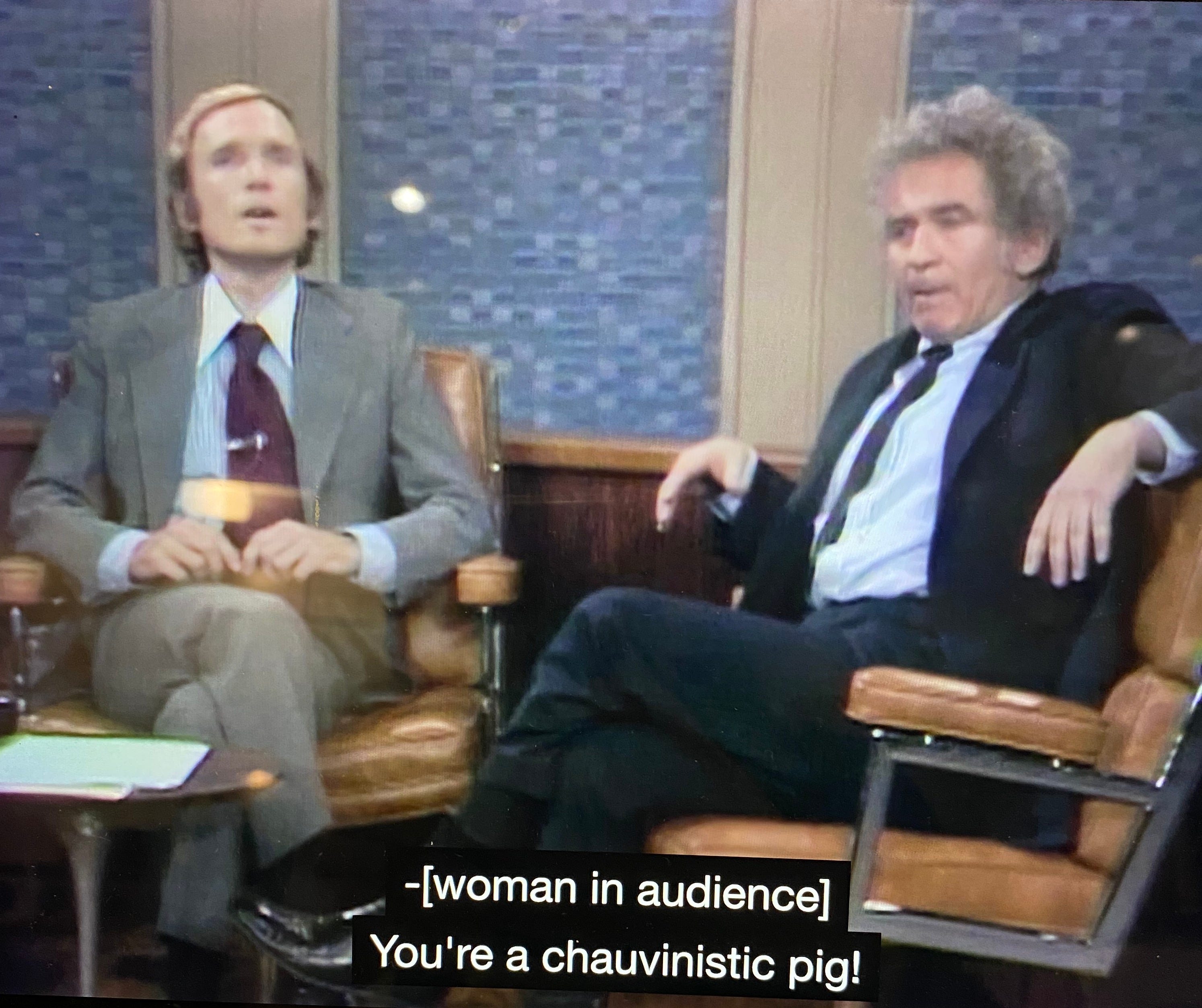 Unchecked contrarianism may have as insidious an effect on sound reason as cynical and conflict-avoidant agreeability. Mailer, and his contemporary counterparts (whether Elon Musk or some anon) may be as capable of “muddying the intellectual waters” as Gore or Millet, but he seemed generally earnest. In any case, his appearances on Cavett and Hall render this a middling concern amidst the exhilaration of watching the devil withstand the fire, while the angels waste away in the wings.